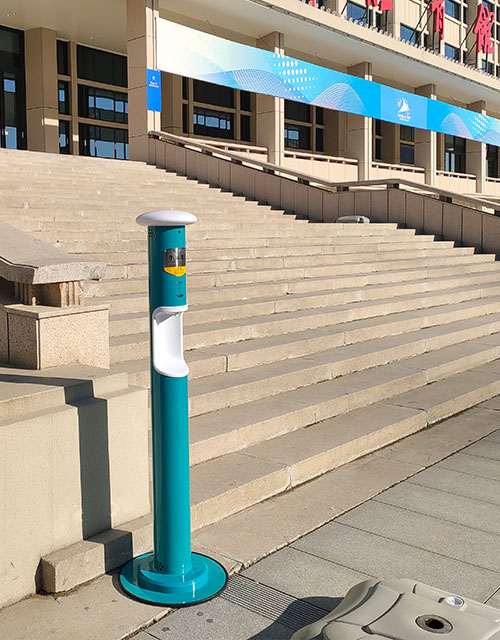 该设施主要露天设置在人流量大的街头、商业区、车站、场馆出入口等重点需要手消毒的区域,作为新型公共卫生设施向人民群众长期免费提供手消毒服务。